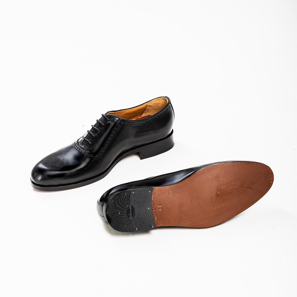 Balmoral Oxford in black leather calf. All materials used are made from the best material to ensure comfort and longetivity. A testament to classic style and exceptional craftsmanship