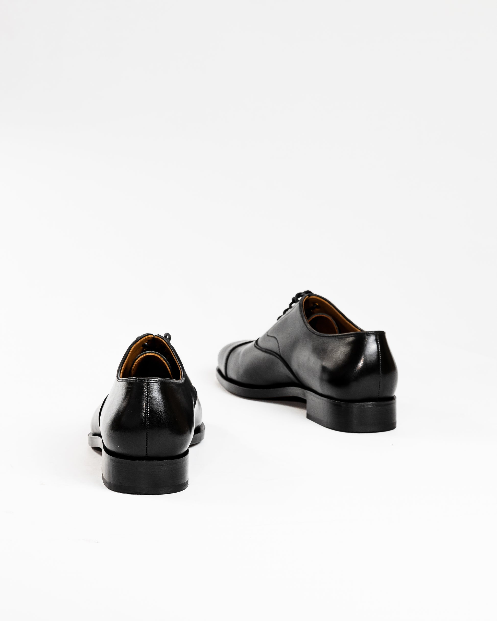 Captoe Oxford in black leather calf. All materials used are made from the best material to ensure comfort and longetivity. A testament to classic style and exceptional craftsmanship. Designed with meticulous attention to detail, these shoes are the epitome of sophistication, making a statement of refined elegance in any setting.